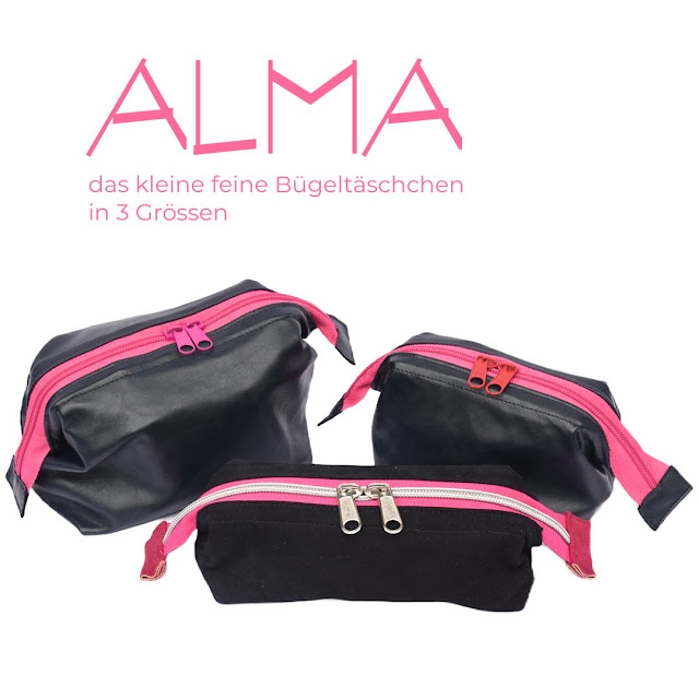 Nach allen Feierlichkeiten und Besuch und Erkältungskrankheiten geht es nun endlich auch weiter mit den Probenähbeispielen von ALMA. Hier seht ihr alle drei Größen in Leder - genäht von Ingeborg, einem echten Lederfan ❤️!